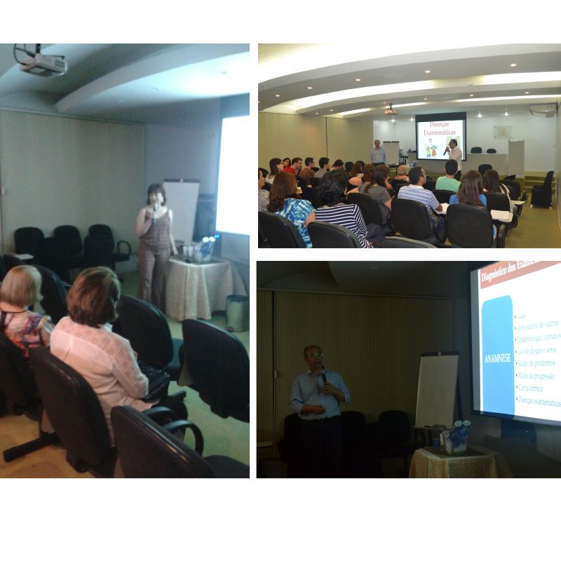 Dr. Robério Leite e Dra. Christiane Leite, realizaram ontem, dia 11 de janeiro, na Sede da Cooped, palestras sobre Doenças Exantemáticas e Diarreia Aguda. Entres as doenças exploradas em debate ontem estavam a Rubéola e a Varicela, definindo Exantema como mancha cutânea de fundo vascular e de causa infecciosa, alérgica, tóxico ou física, podendo se manifestar na forma de mácula, pápula, vesícula, pústula, crosta e sufusão hemorrágica.
