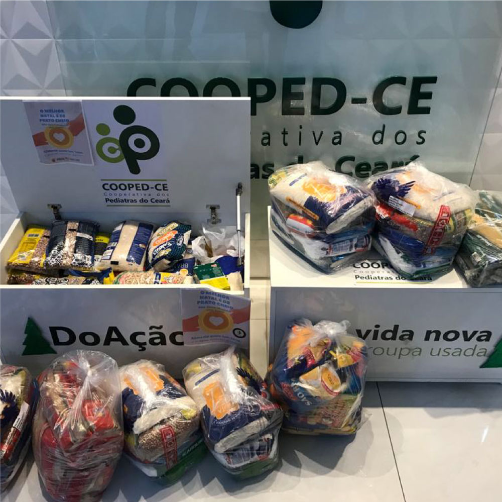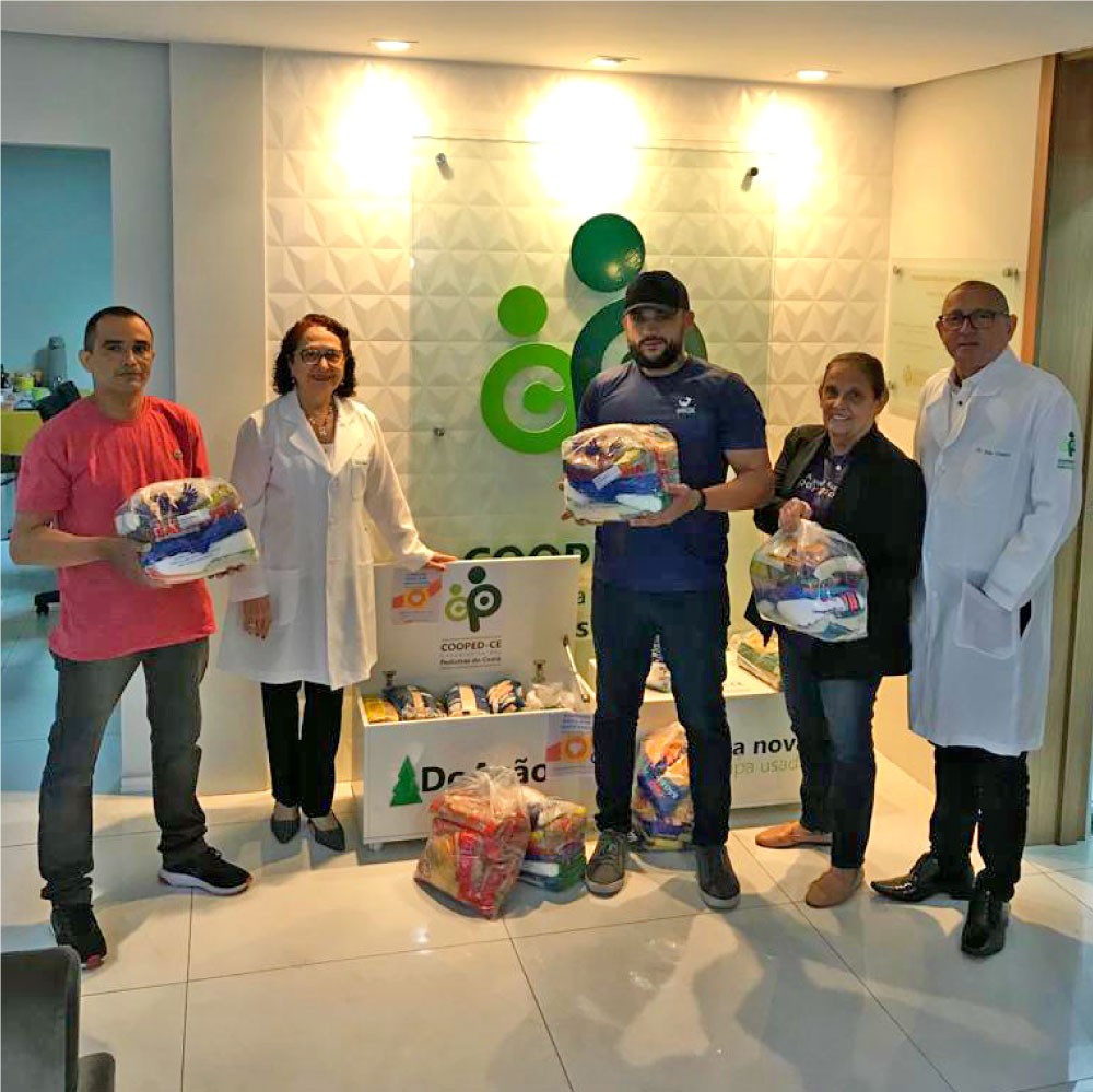 A Cooped-CE apoia instituições carentes que atuam no combate à fome. Nesse sentido, a Cooperativa realiza mensalmente uma doação financeira para o projeto “Quem tem fome tem pressa”. Além desse projeto, a Cooperativa coleta doações de alimentos não perecíveis que são entregues a instituições que prestam apoio à população carente. Os cooperados são incentivados a colaborar com doações a qualquer momento.
