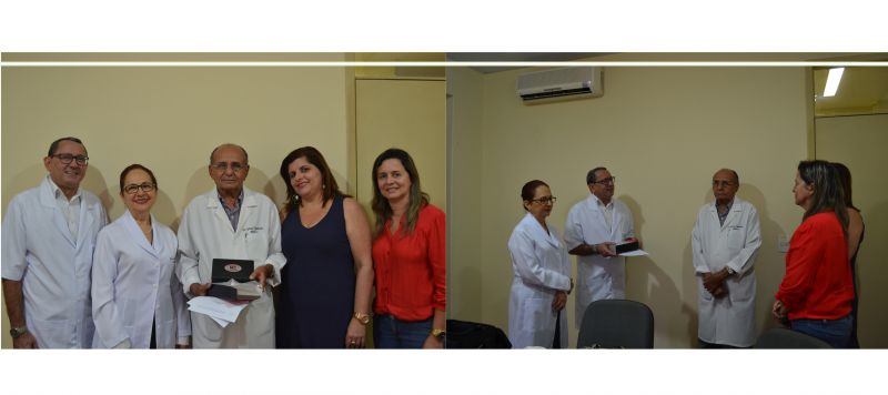 Dr. Osmiro Barreto, Presidente da COOPED e Dra. Francisca Lúcia, Superintendente da Instituição, fizeram, então a entrega para Dr. Gilson Figueiredo, Diretor Clínico e Técnico, Dra. Vládia Camurça, Diretora Geral do Hospital de Maracanaú e