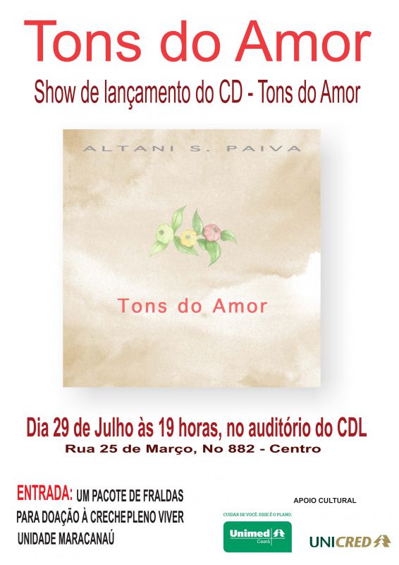 Início Notícias Lançamento CD TONS DO AMOR, da cooperada, Dra. Altani Paiva Notícias Lançamento CD TONS DO AMOR, da cooperada, Dra. Altani Paiva 21/07/2015 Share on Facebook Tweet on Twitter Source: Cooped ARTIGOS RELACIONADOSMAIS DO AUTOR Fotos 30 Anos Cooped – “A Festa do Ano” Especiais Guia de Diretivas do II Congresso Cearense de Desenvolvimento e Comportamento Infantil Notícias Curso Admissão Novos Cooperados Notícias Tripla celebração na Cooped Notícias Autismo Run. Vitória para todos. Notícias Festa Black & White Últimas notícias 30 Anos Cooped – “A Festa do Ano” 15/12/2025 Guia de Diretivas do II Congresso Cearense de Desenvolvimento e Comportamento... 03/12/2025 Curso Admissão Novos Cooperados 12/11/2025 Tripla celebração na Cooped 01/08/2025 Autismo Run. Vitória para todos. 05/05/2025 Agenda