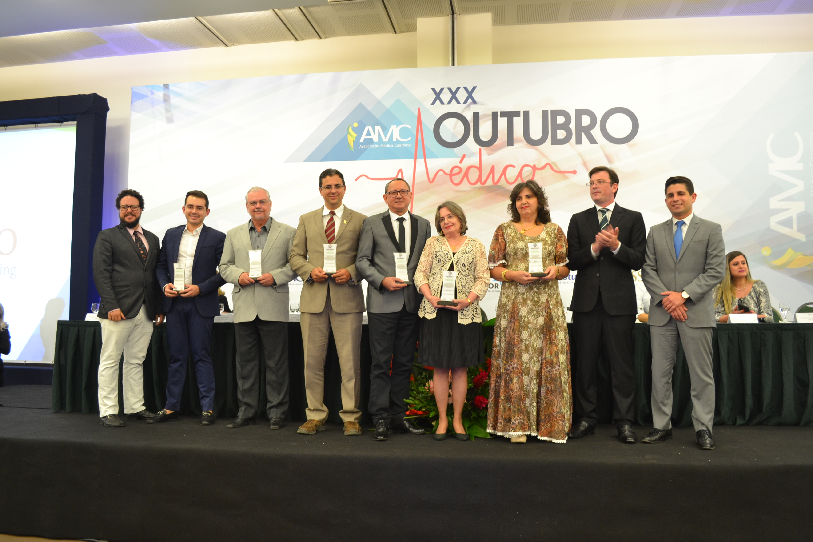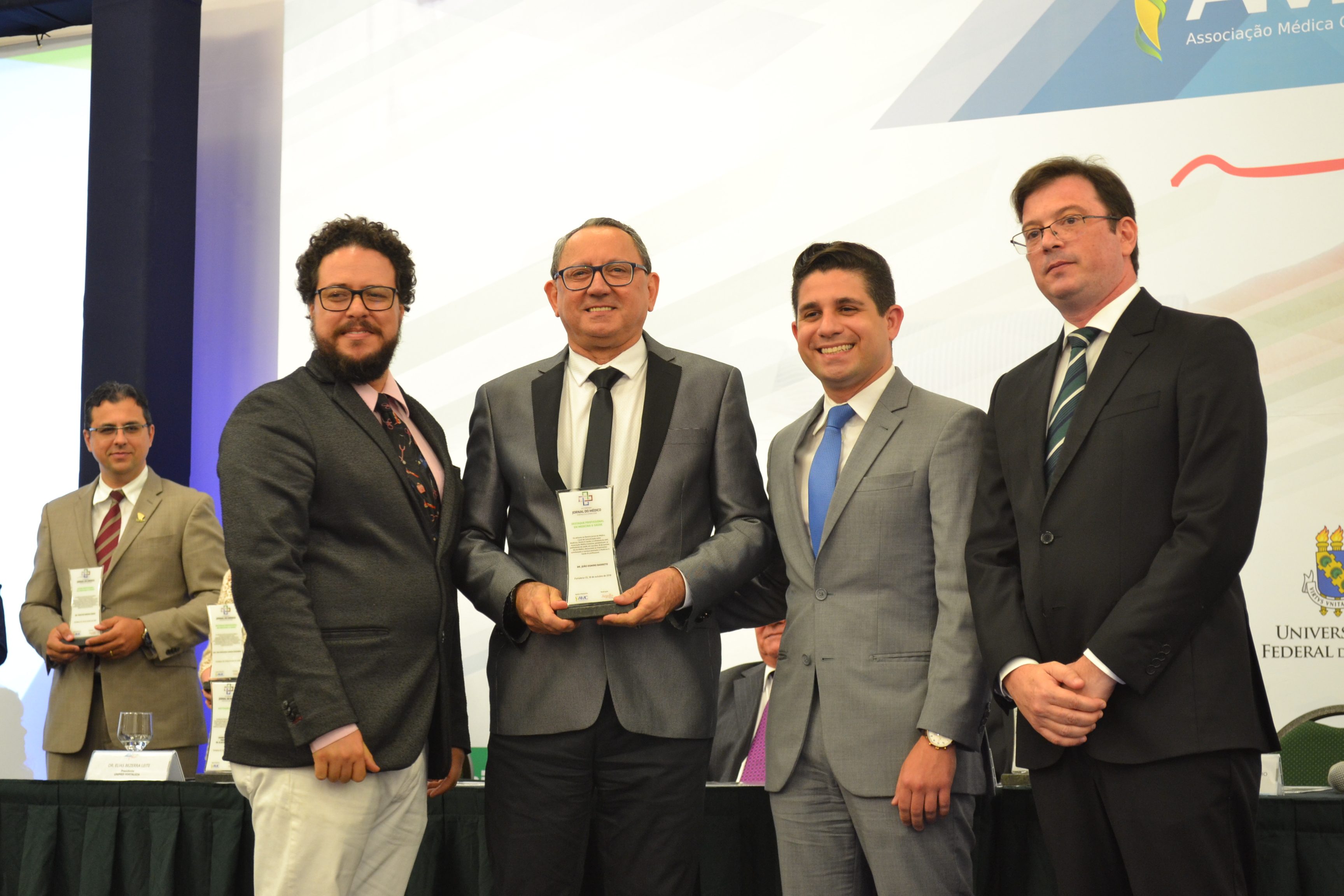 A outorga, na área DESTAQUE PROFISSIONAL EM MEDICINA & SAÚDE, foi indicação da Associação Médica Cearense (AMC). O presidente da entidade, Dr. Carmelo Leão e demais autoridades, fizeram a entrega.