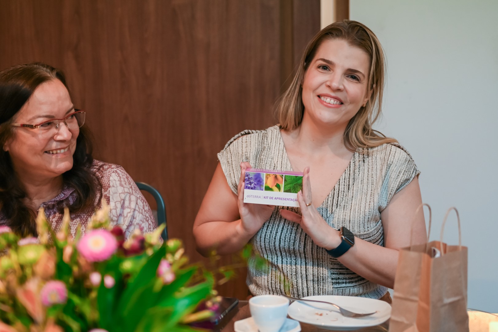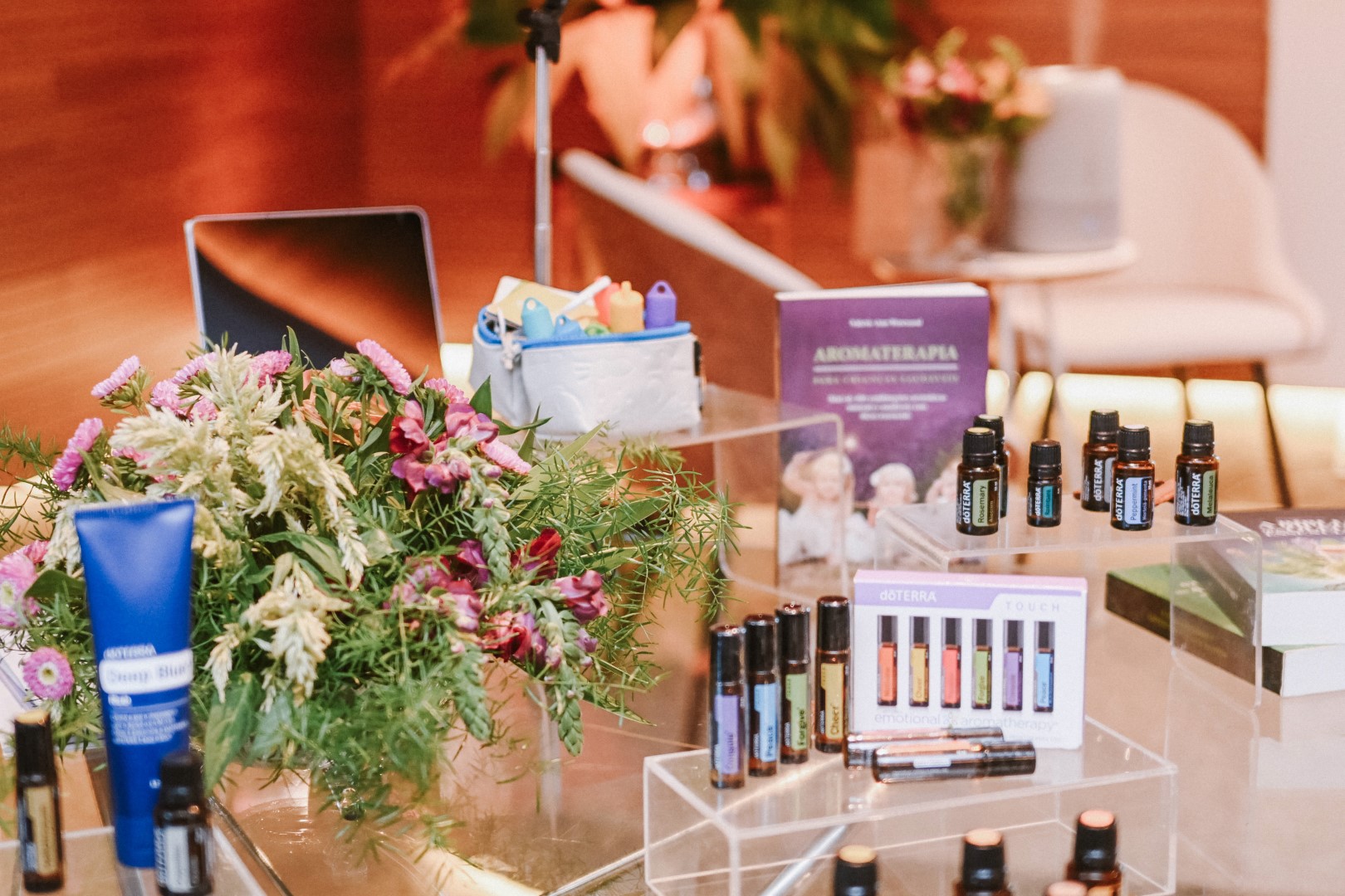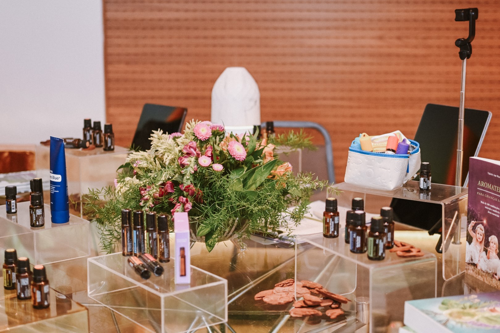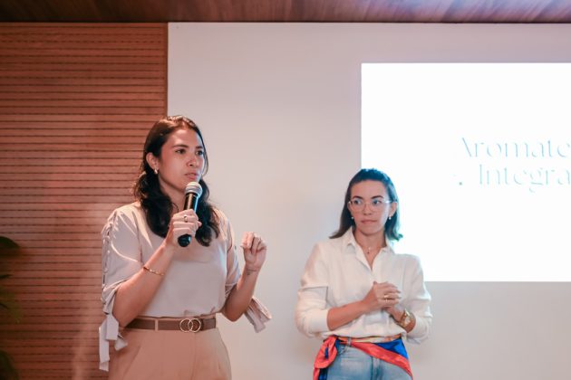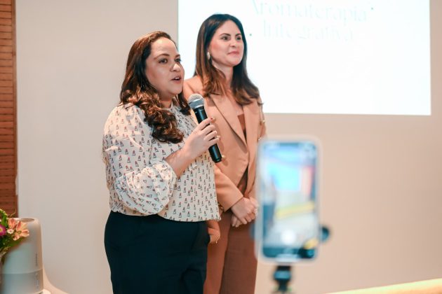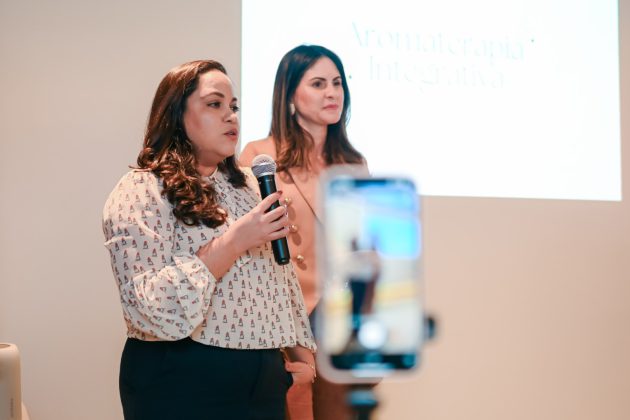 Logo às 10h, tivemos uma roda de conversa sobre Aromaterapia com a consultora Marina Macdowell, com a presença ainda das psicólogas que coordenam o projeto PlenaMente da Cooperativa, Alanna Almeida e Sarah Roque.