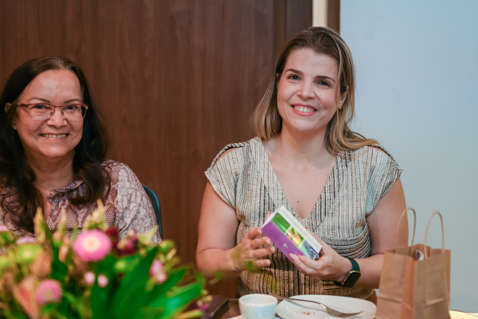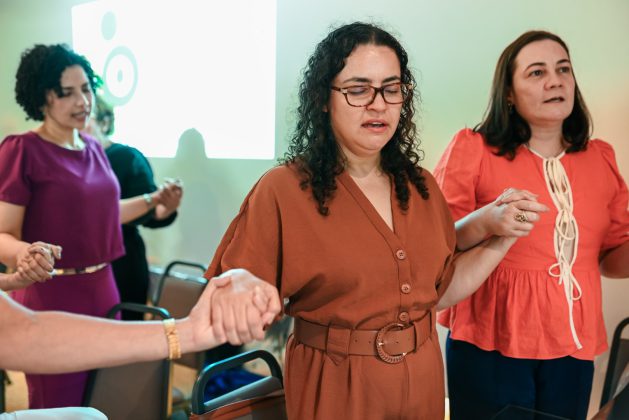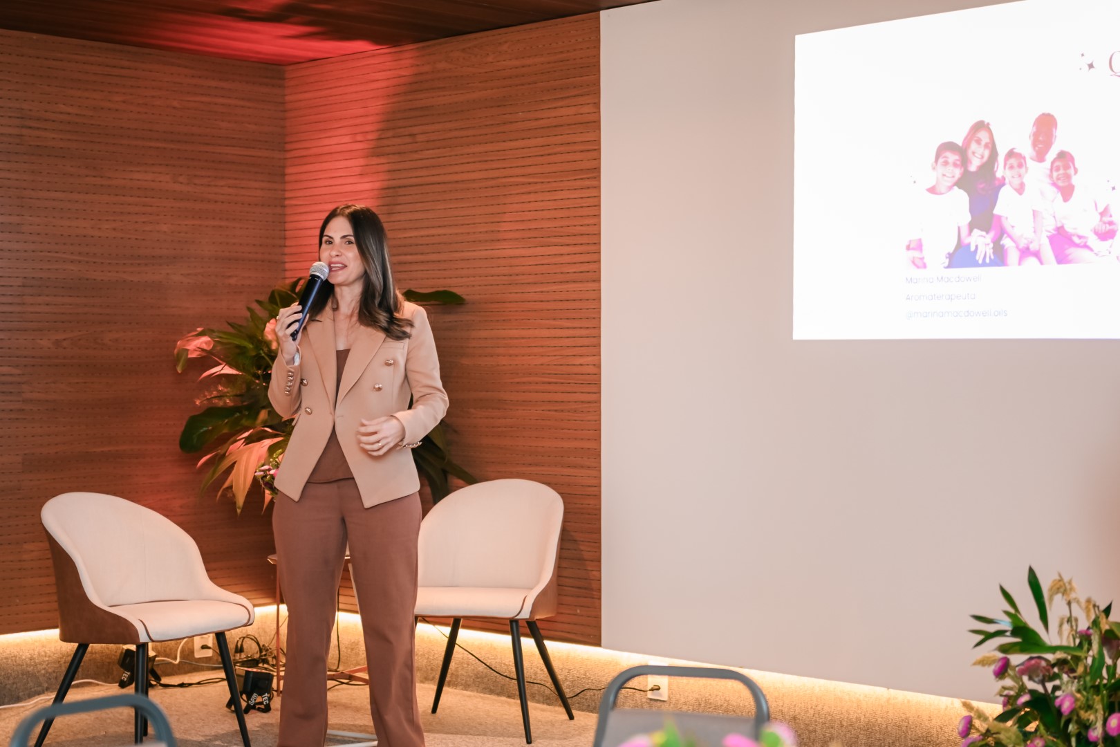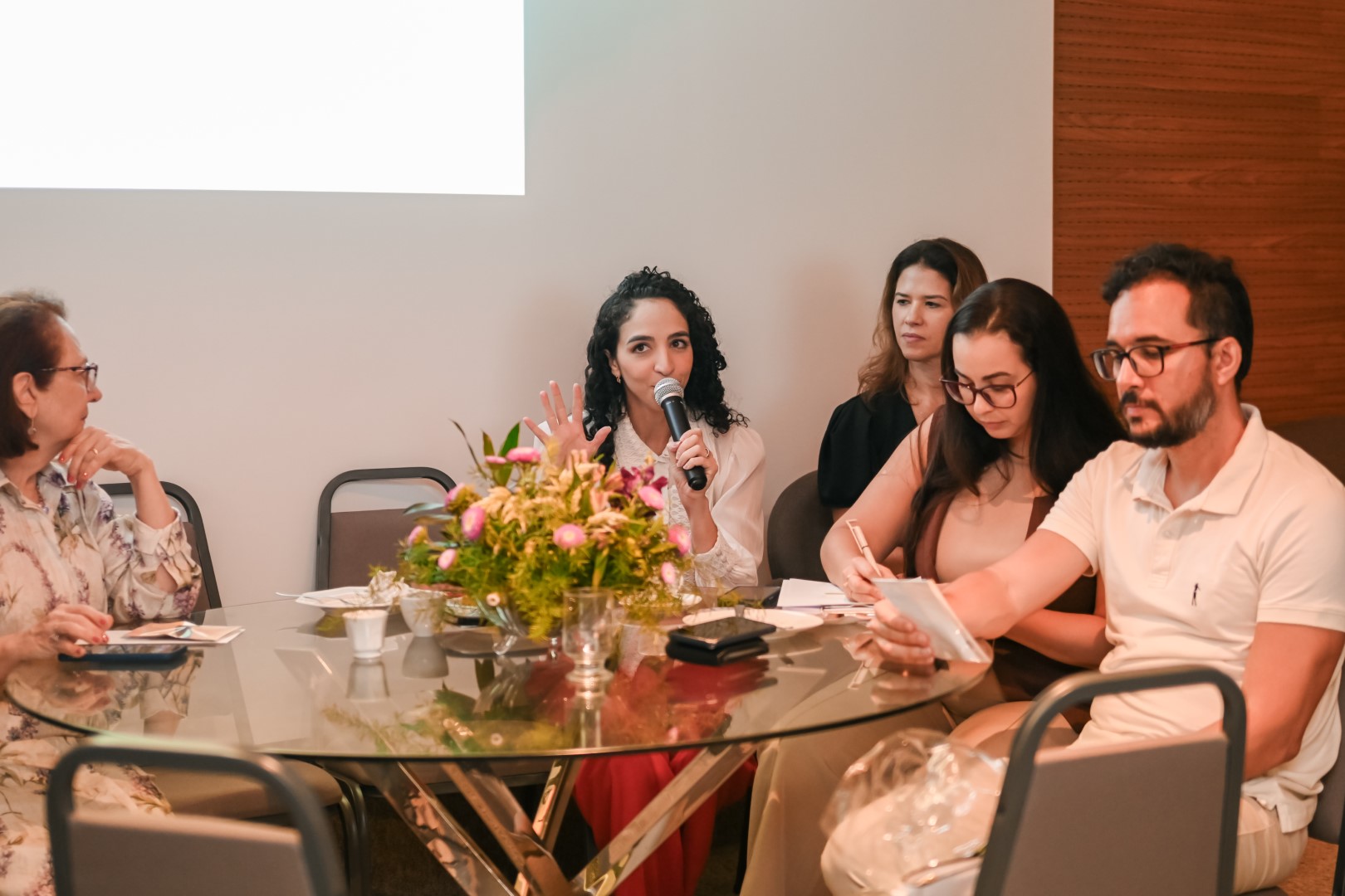 Logo às 10h, tivemos uma roda de conversa sobre Aromaterapia com a consultora Marina Macdowell, com a presença ainda das psicólogas que coordenam o projeto PlenaMente da Cooperativa, Alanna Almeida e Sarah Roque.