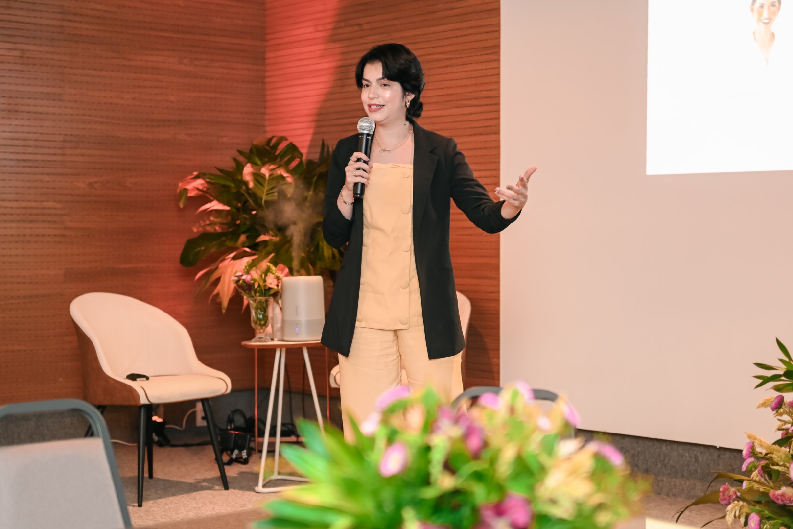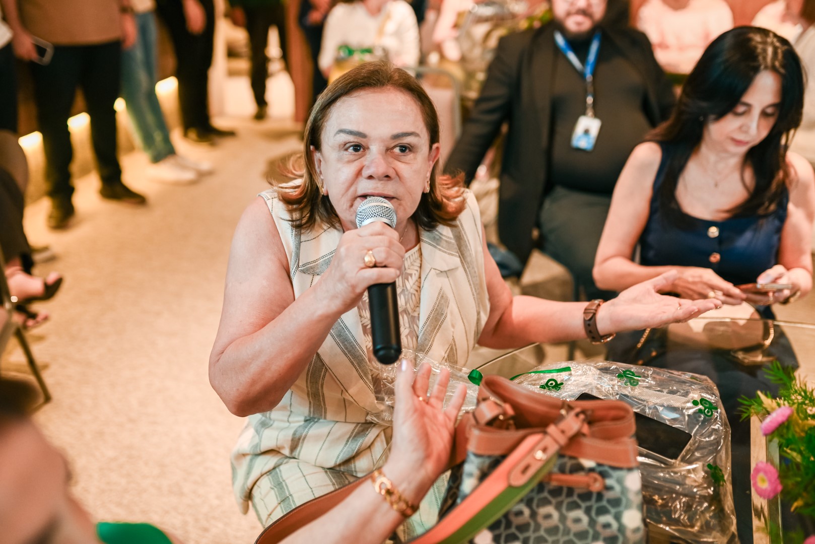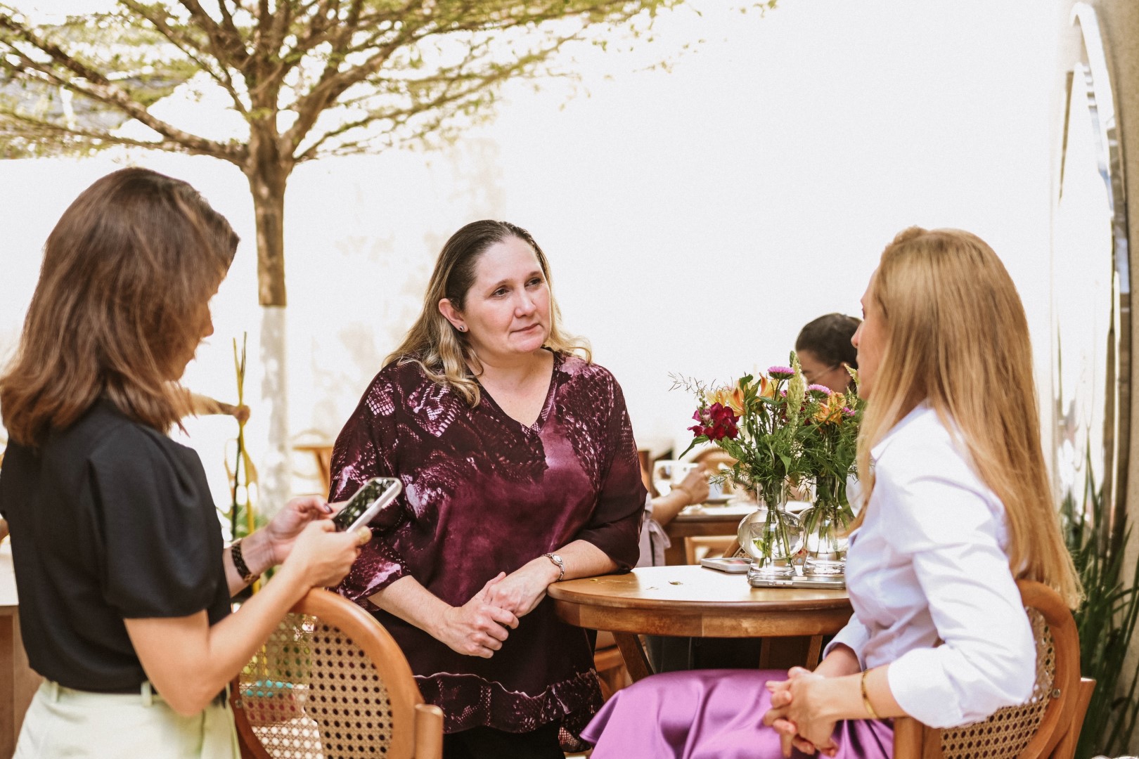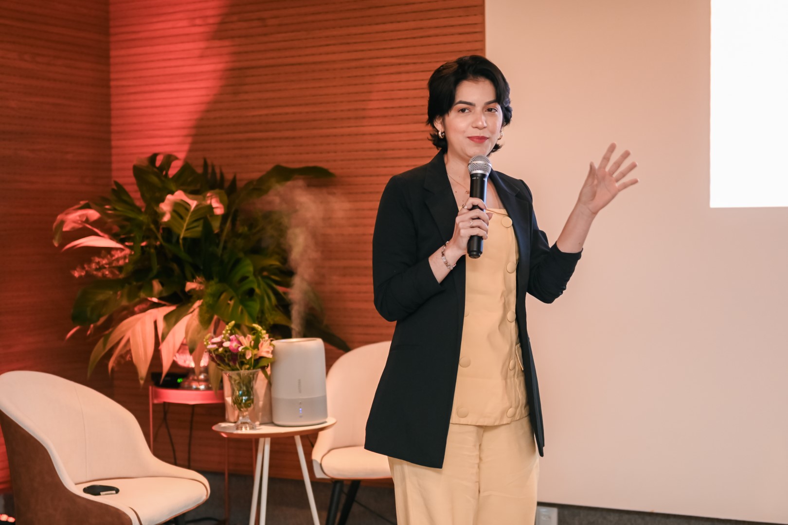 Logo às 10h, tivemos uma roda de conversa sobre Aromaterapia com a consultora Marina Macdowell, com a presença ainda das psicólogas que coordenam o projeto PlenaMente da Cooperativa, Alanna Almeida e Sarah Roque.