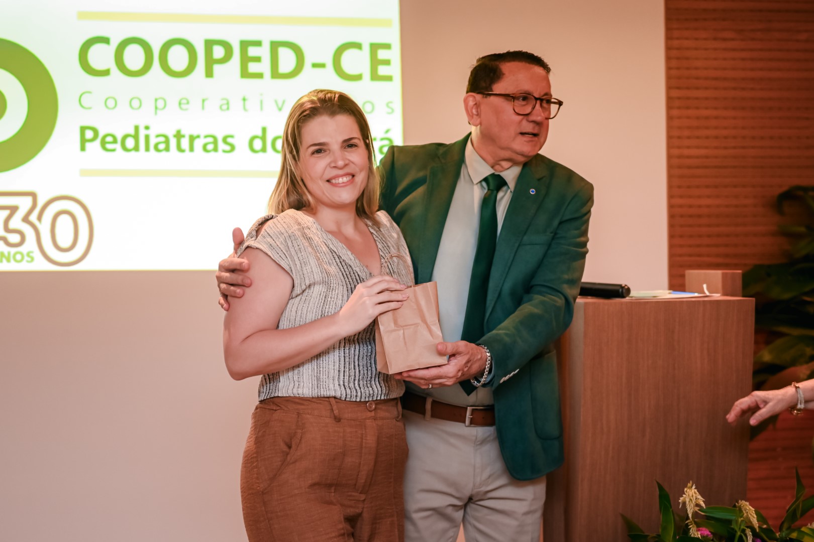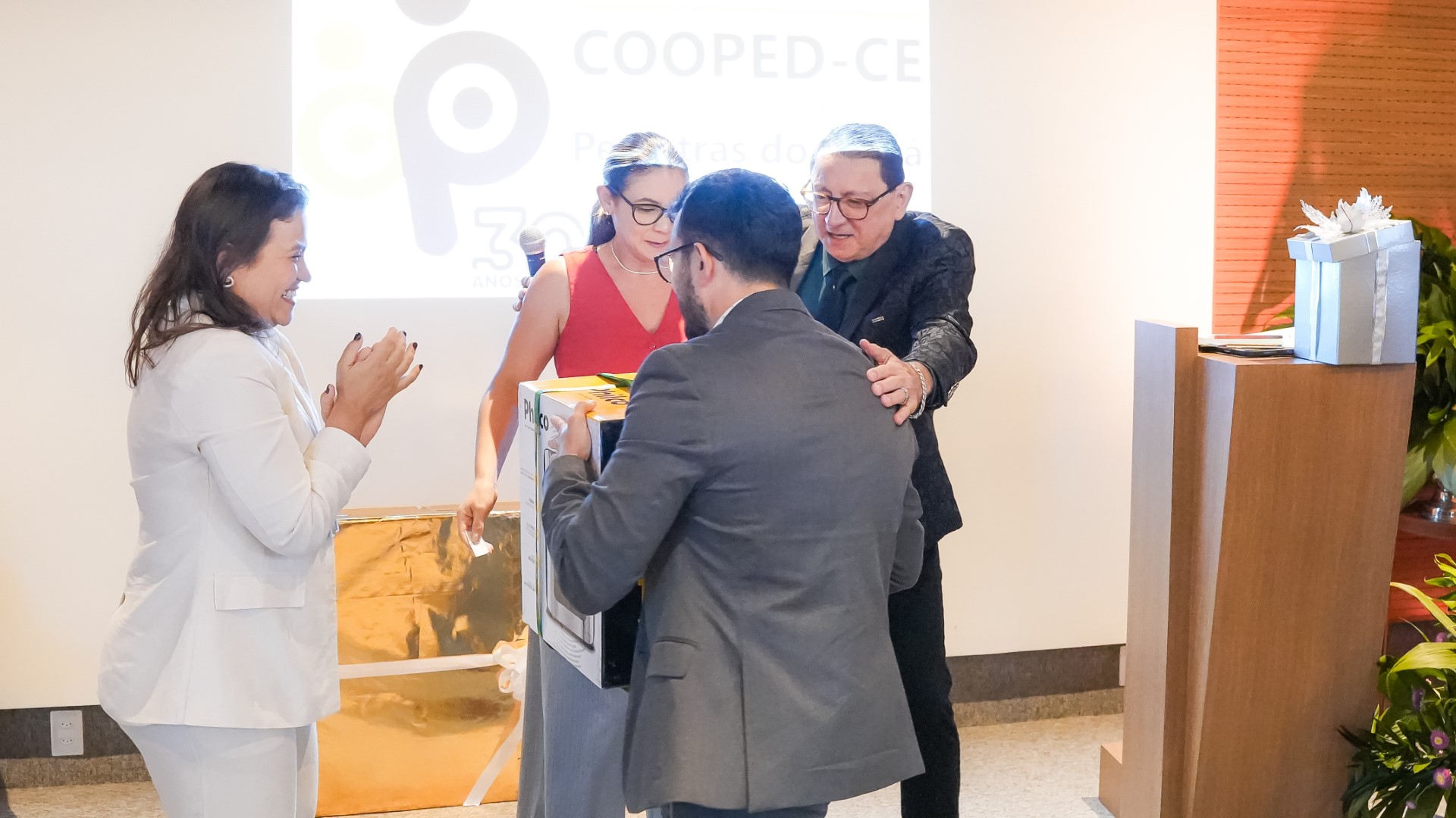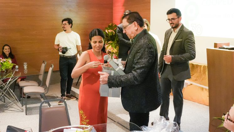 Todos os ex-presidentes e o atual presidente da Cooped foram reconhecidos e homenageados na celebração por suas contribuições para solidificar a imagem da Cooperativa ao longo de seus 30 anos de história. Um momento importante e especial da festa. Mas talvez o que mais marcou a solenidade foi a homenagem à primeira colaboradora da casa, Patrícia Soares da Silva. Visivelmente emocionada, Patrícia agradeceu a todos pelo privilégio de fazer parte dessa história de sucesso.