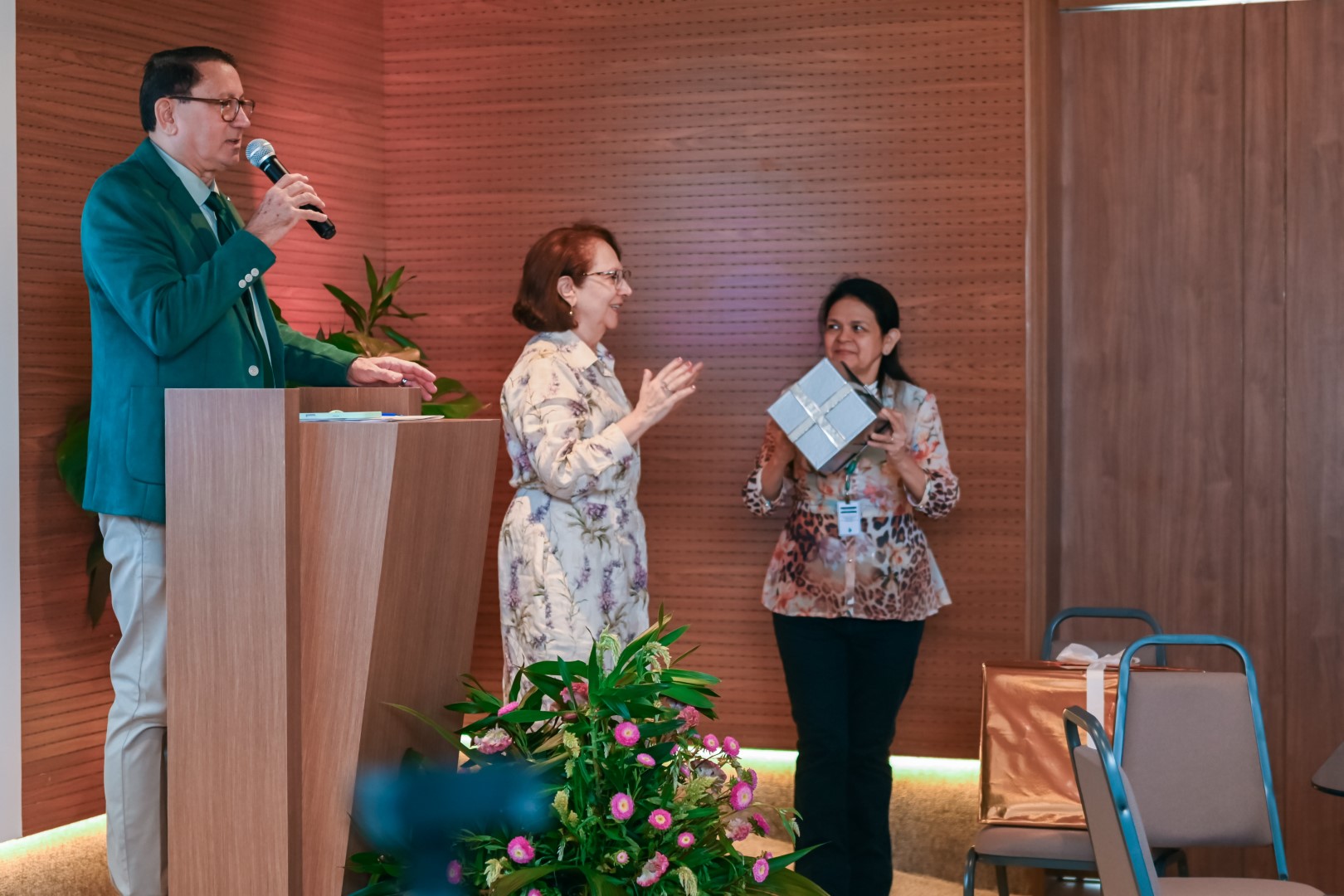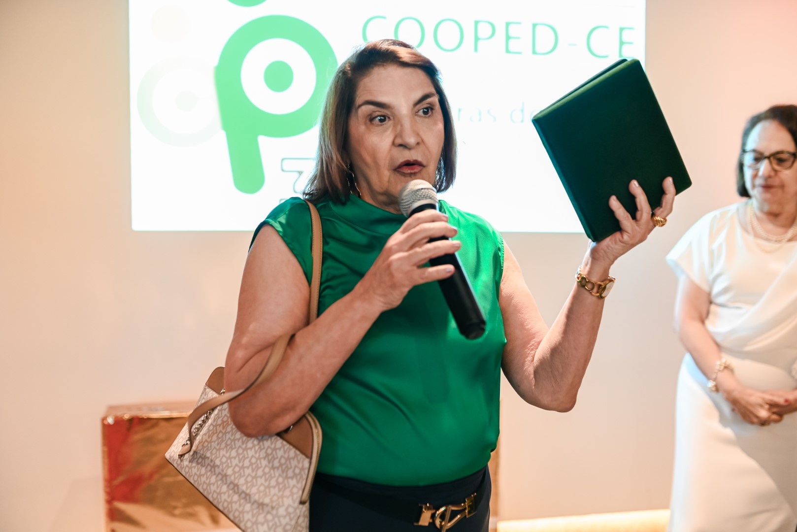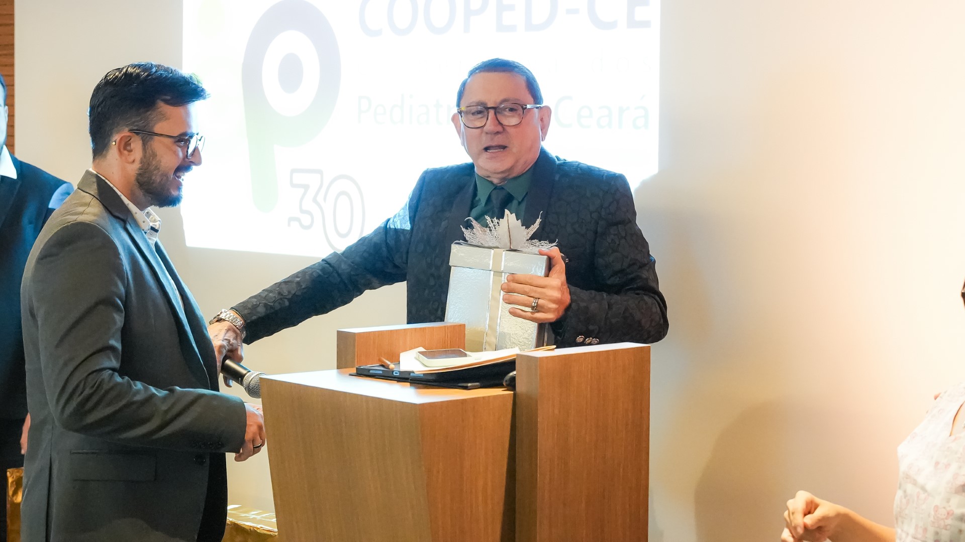 Todos os ex-presidentes e o atual presidente da Cooped foram reconhecidos e homenageados na celebração por suas contribuições para solidificar a imagem da Cooperativa ao longo de seus 30 anos de história. Um momento importante e especial da festa. Mas talvez o que mais marcou a solenidade foi a homenagem à primeira colaboradora da casa, Patrícia Soares da Silva. Visivelmente emocionada, Patrícia agradeceu a todos pelo privilégio de fazer parte dessa história de sucesso.