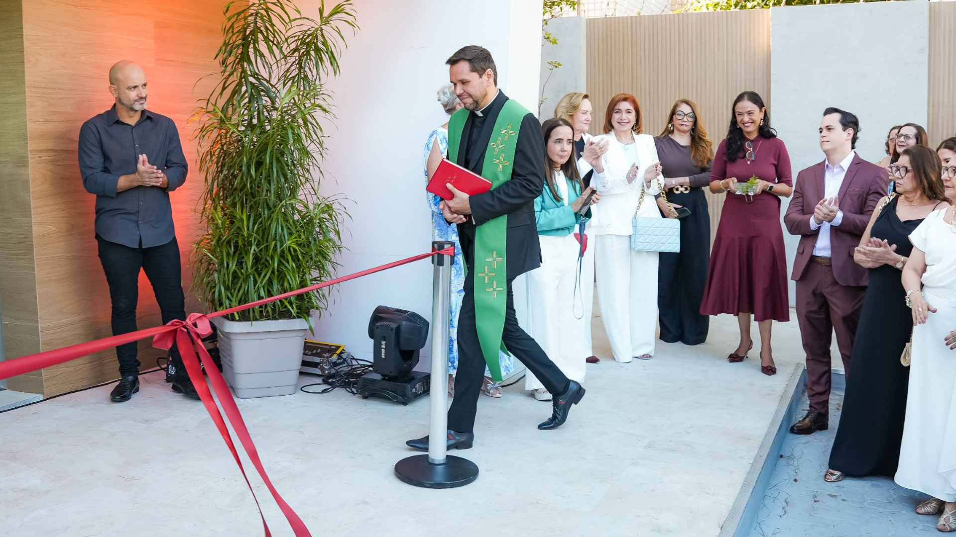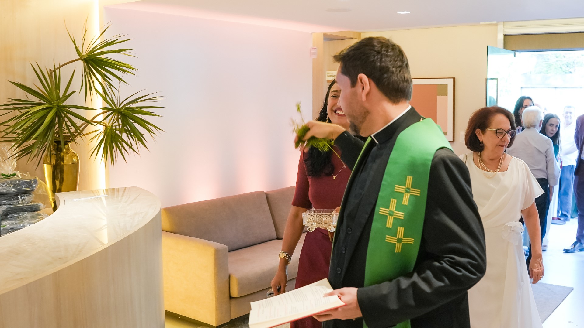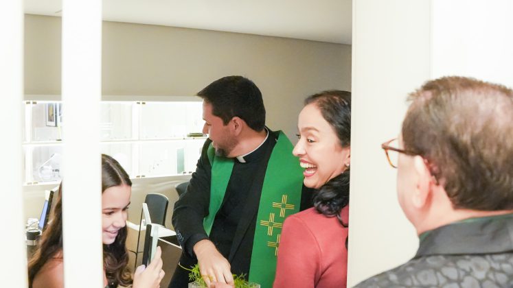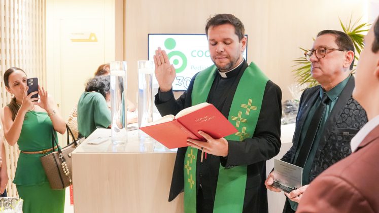 Chegada a hora da solenidade de reinauguração, tivemos a honra de receber o Padre Helano Samy, pároco da Paróquia Nossa Senhora da Glória. Após o desenlace oficial da fita inaugural pela diretoria da Cooped, Padre Helano prosseguiu com a bênção das novas instalações. Um momento especial, envolto por uma aura divina que tocou a todos. “Eu, pessoalmente, senti fortemente a presença do Senhor,” revelou Dr. Osmiro Barreto, Diretor-Presidente da Cooped.