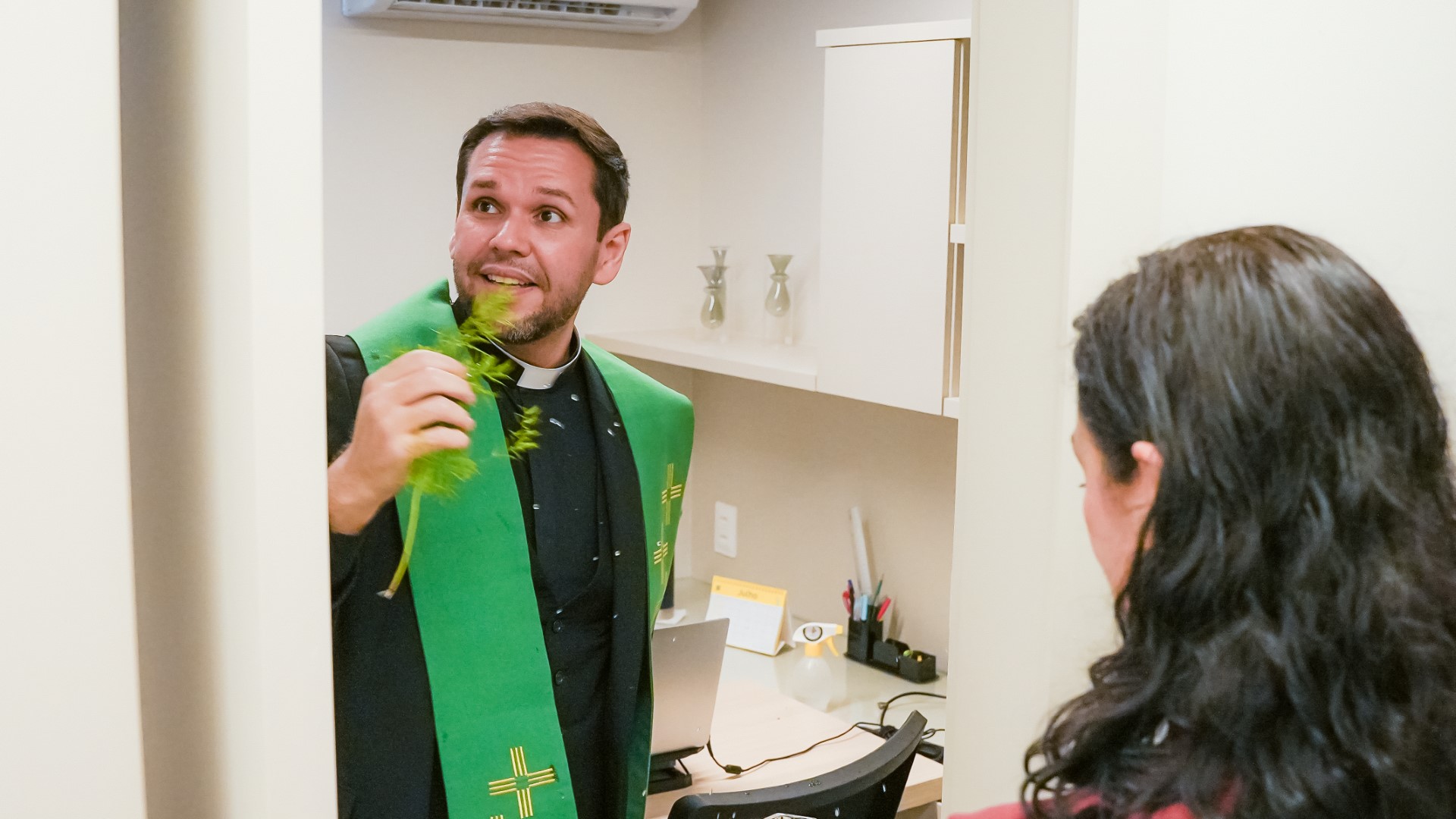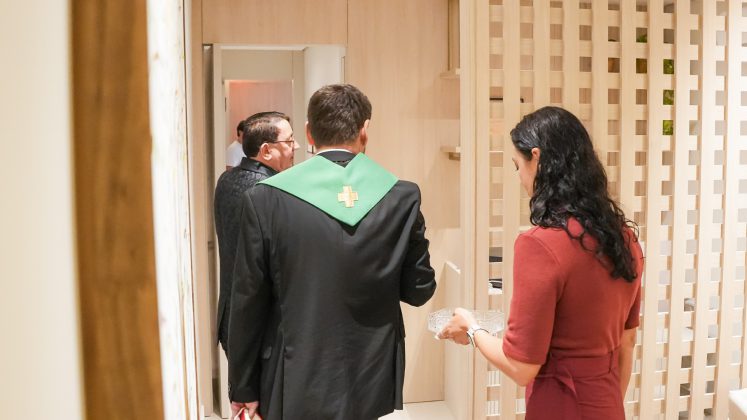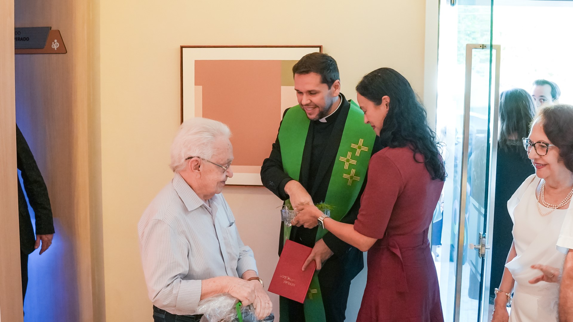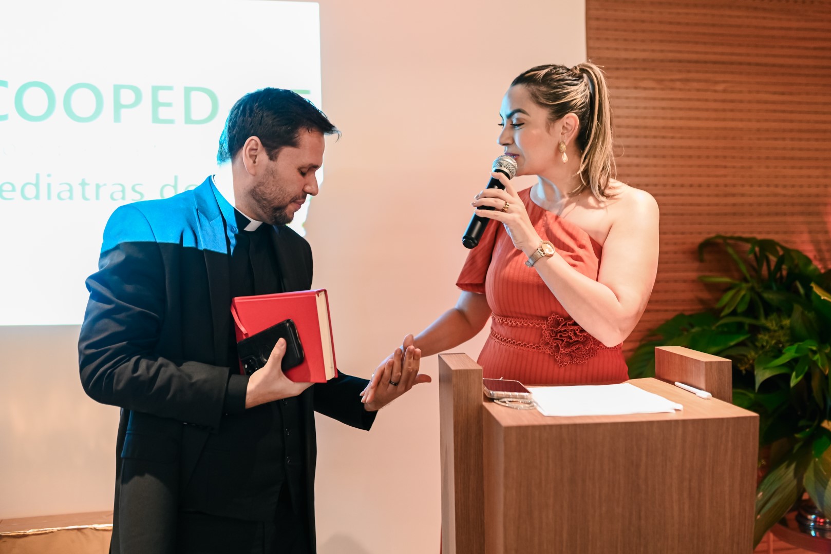 Chegada a hora da solenidade de reinauguração, tivemos a honra de receber o Padre Helano Samy, pároco da Paróquia Nossa Senhora da Glória. Após o desenlace oficial da fita inaugural pela diretoria da Cooped, Padre Helano prosseguiu com a bênção das novas instalações. Um momento especial, envolto por uma aura divina que tocou a todos. “Eu, pessoalmente, senti fortemente a presença do Senhor,” revelou Dr. Osmiro Barreto, Diretor-Presidente da Cooped.